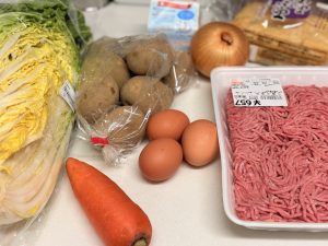まずは夕食に作る材料を全て調理台に出すところから始める。