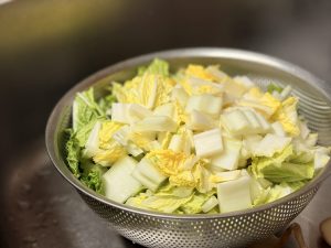 野菜も泥がついているような根菜よりも葉物からカットすると洗う手間が減らせる。