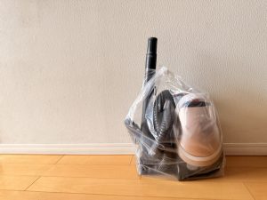 古い掃除機は不燃ごみの袋にまるくおさまった。