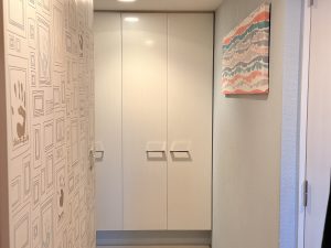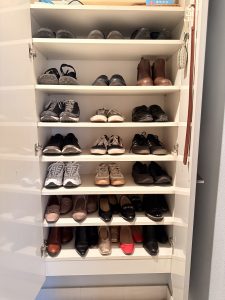帰宅時玄関で干した傘を靴を履いたまま、下駄箱に入れられる。