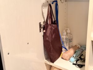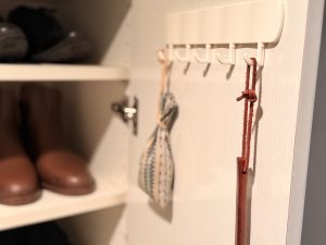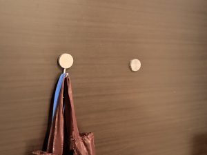 ドアにマグネットフックを付け、名札と上履きを見えるようにしておけば、うっかり忘れを防止できる。
