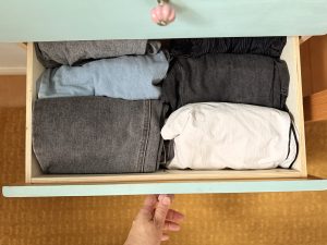 新たな購入したボトムは、これ以上引き出しには入らない。