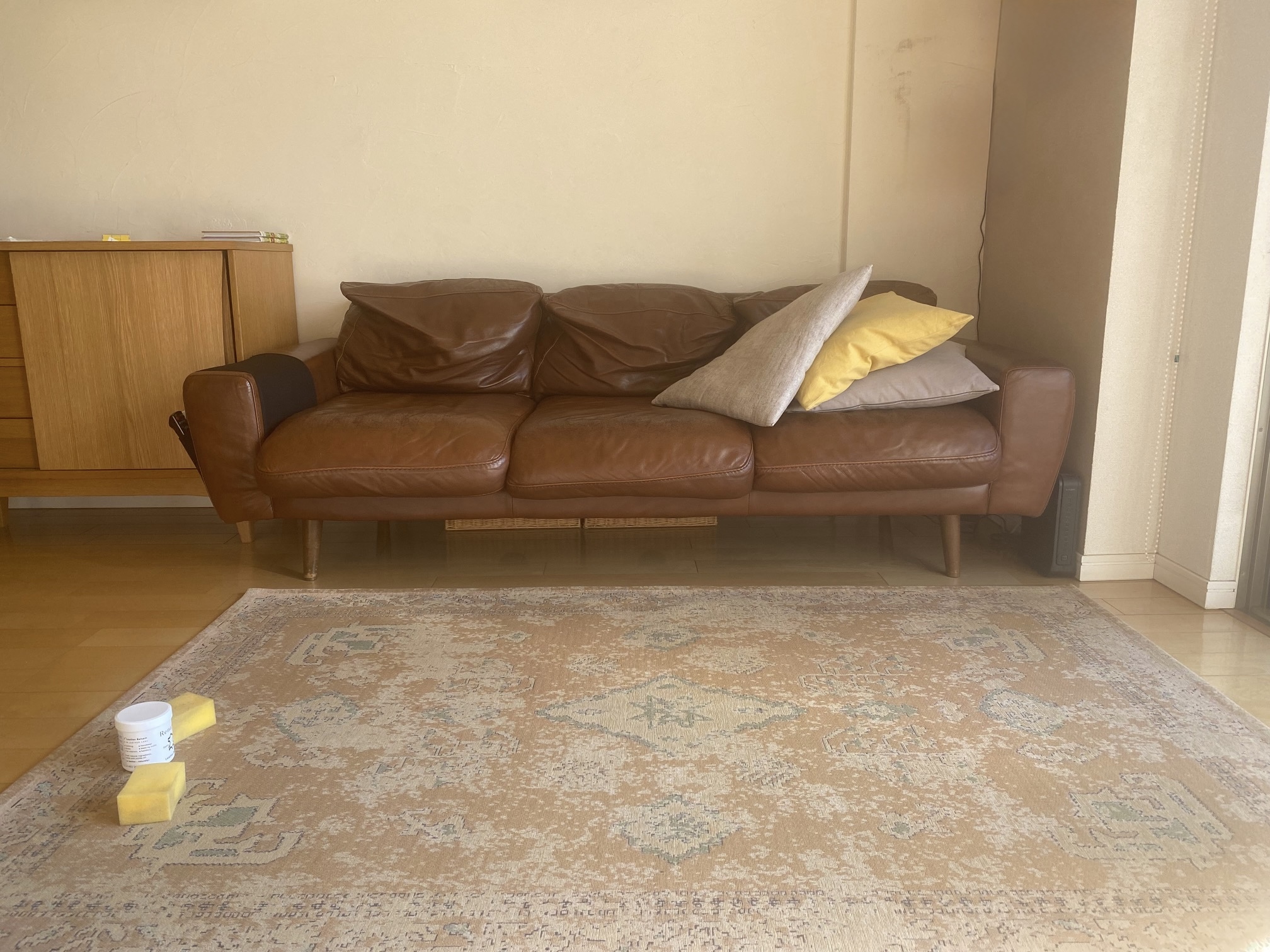 ソファーだけでなく、革の靴やバッグにも塗る。