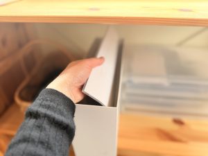 立てたり、引き出しがあると、棚の中も使いやすくなる。