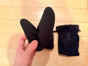 コンパクトで(室内用スリッパに比べ)軽量である。付属の入れ物が付いている。