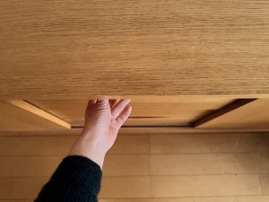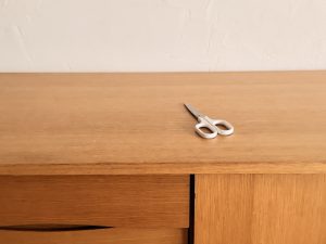 ダイニングにあるチェスト引き出しからはさみを取り、