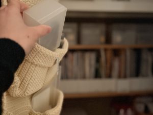 2、3歩歩いただけで、電池交換が可能になり、戻しやすい収納になる。