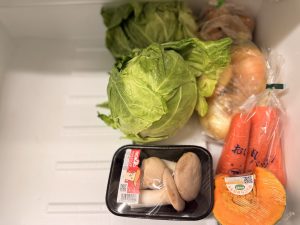 キャベツ2玉を入れるために、仕切りケースなんかあったら入らない。