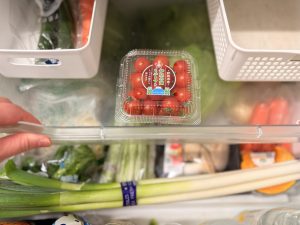 ・上段トレー引き出しには、埋もれそうなミニトマトやカットした半端野菜