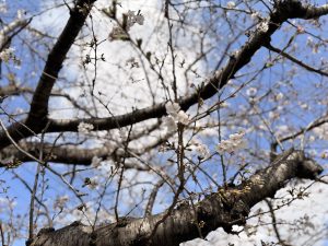 お花見にはスプリングコートを片手に持つくらいの陽気。