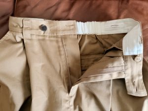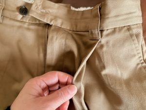 個人的にさほど感じないのは、チノという馴染みのある素材と
