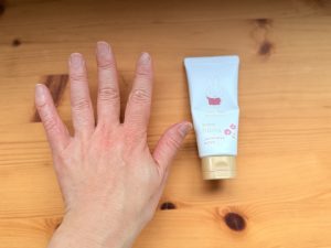 きちんとクリーム状であるが、手につけるとサラっと軽く伸びる。馴染みやすく扱いやすい。