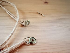 額に紐通し金具と紐を通し